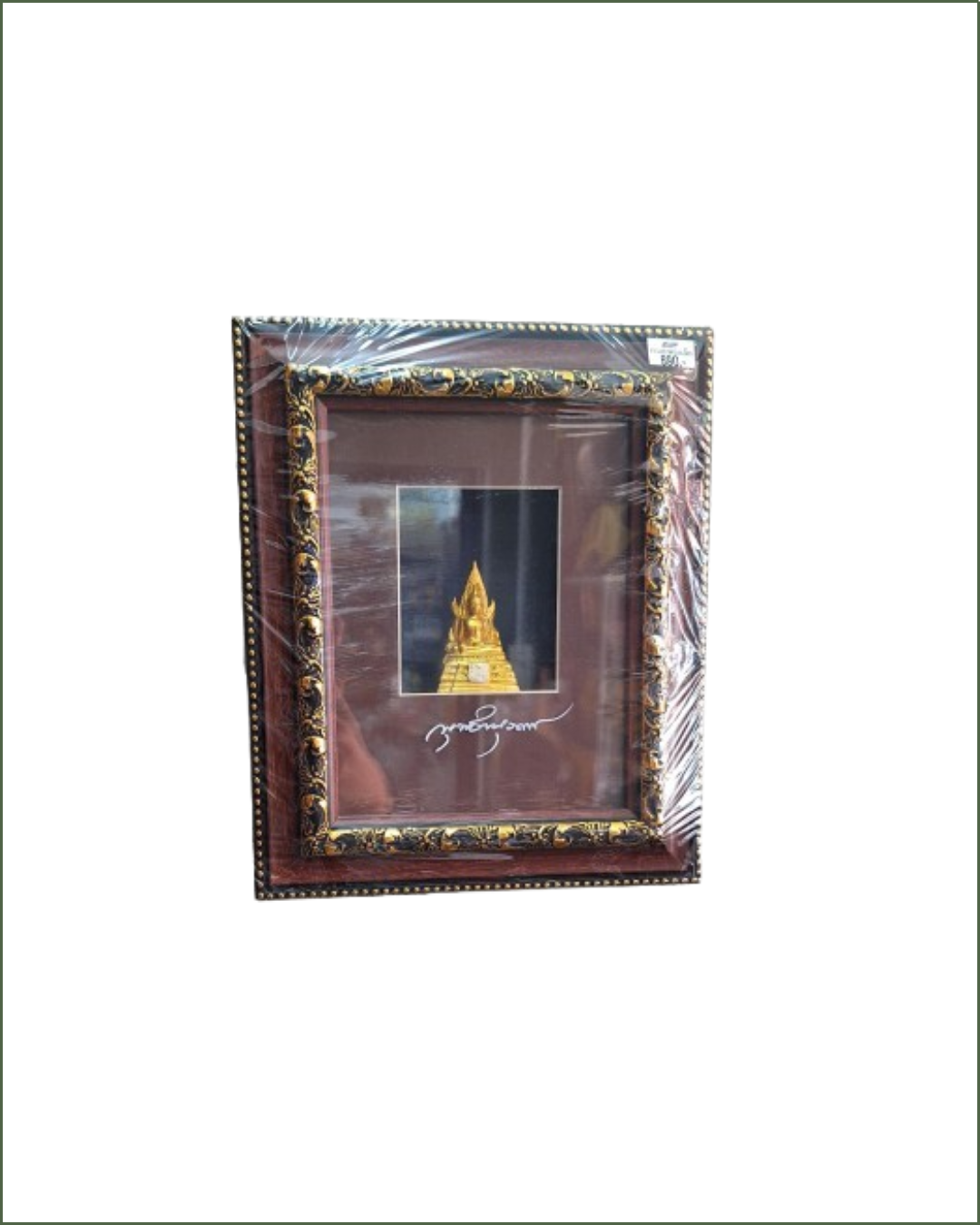 กรอบพระขนาดเล็กในดีไซน์เรียบหรู พร้อมองค์พระพุทธรูปสีทอง เหมาะสำหรับถวายพระในโอกาสพิเศษ ตกแต่งหิ้งพระ หรือมอบเป็นของขวัญในวันสำคัญ