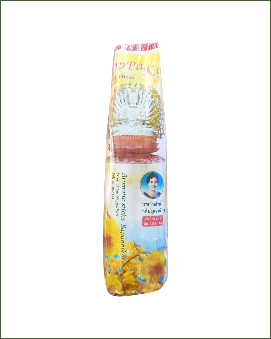 ตัวธูปห่อด้วยกระดาษลวดลายสวยงาม มอบความรู้สึกเป็นสิริมงคล เหมาะสำหรับถวายพระหรือใช้ในโอกาสพิเศษต่าง ๆ